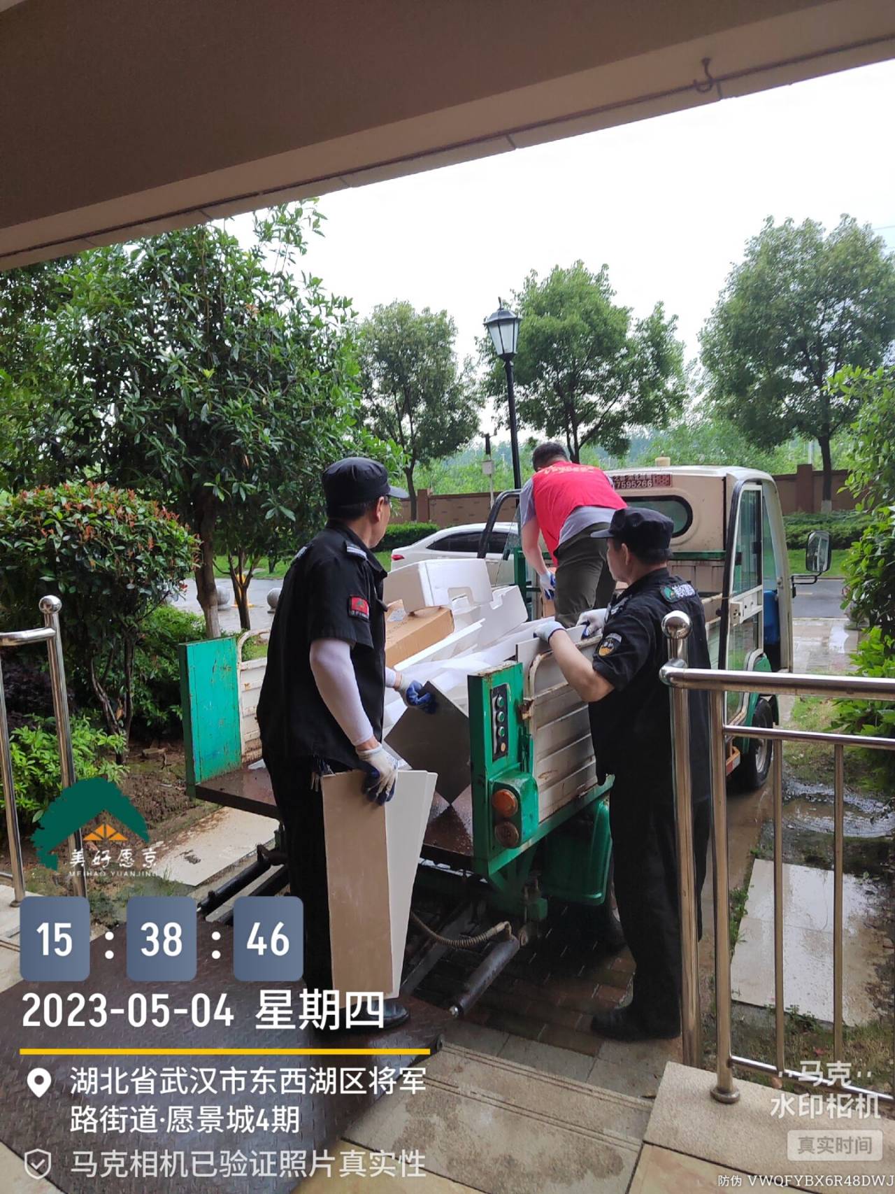 5月4日当天下午15时,虽然天空下起了突如其来的大雨,但是集中清理行动丝毫不耽延。楼栋管家、维护部队员、保洁员全力配合社区工作者,分组带队在各个楼栋,踩着楼梯一步一步每一层都不漏过。他们不怕脏、不怕累,将堆放在各个角落的物品靠着双手一点点搬完,保洁员将清理过程中产生的灰尘及垃圾及时打扫干净。由于部分楼道内的杂物过多、过重,有些需要几个人一起抬、一起扛才能完成清理。维护部队员更是不辞辛苦,一趟一趟将装满杂物的大垃圾桶运送到楼下。大家都累得满头大汗,满身灰尘,但没有谁喊一声累,没有谁中途当“逃兵”,齐心协力完成了当天的清理任务。