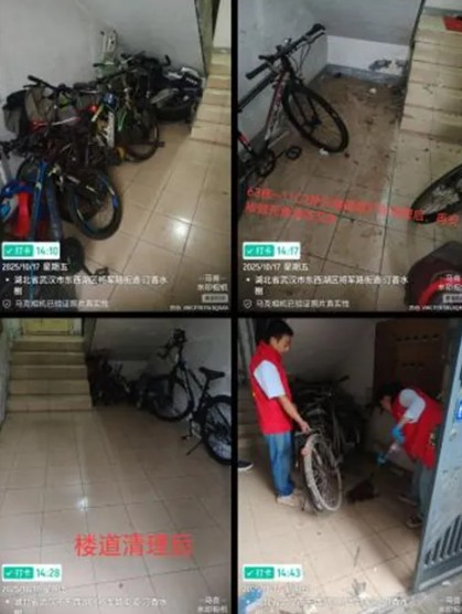 为了给广大业主营造一个更加安全、整洁、舒适的生活环境,武汉美好愿京-汀香水榭物业服务中心于2025年10月17日开展了一场以“清理楼道僵尸车,消除卫生死角”为主题的环境专项整治行动。此次行动旨在解决小区环境的“老大难”问题,并且也得到了广大业主的积极响应与支持。