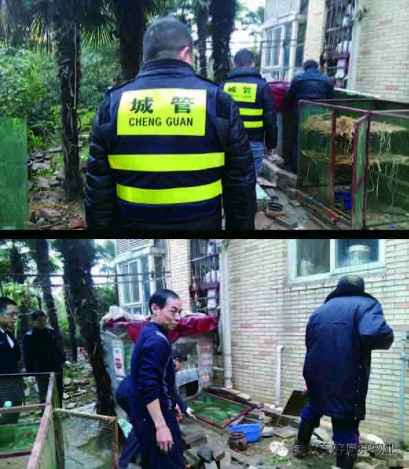 11月15日左右,管理处接到该栋楼上业户祝女士投诉反映——一楼业户又买来了新苗栽种,并准备加固栏栅、鸡笼。潘部长只好再次赶往圈地业户家进行协调。协调过程依旧和前一次一样顺利,可这次她也留了个心眼,潘部长和城管部门立即联系作了预防,如有再发现种植、圈养行为立即采取行动。